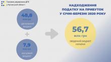Впродовж  січня - березня 2020 року платники Луганської області спрямували до зведеного бюджету України 56,7 млн грн податку на прибуток. При цьому державний бюджет отримав 48,8 млн грн, до місцевих бюджетів мобілізовано 7,9 млн гривень.