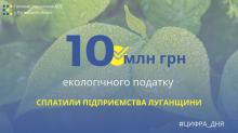 В Головному управлінні ДПС у Луганській області повідомили, що за січень - квітень 2020 року платники податків Луганщини перерахували до зведеного бюджету 10,4 млн грн екологічного податку. До спеціального фонду місцевих бюджетів було зараховано 3 млн грн, до державного бюджету – 7,4 млн гривень.