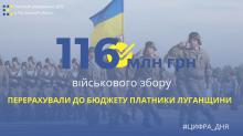 В Головному управлінні ДПС у Луганській області повідомили, що за січень - червень 2020 року надходження військового збору склали 115,6 млн гривень. Це на 14,1 млн грн, або 13,9 відс. більше надходжень за січень - червень 2019 року.