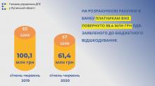В Головному управлінні ДПС у Луганській області повідомили, що за 6 місяців 2020 року платники податків Луганщини подали 57 заяв про повернення суми бюджетного відшкодування на розрахунковий рахунок в банку. Загальна сума заявленого бюджетного відшкодування становить 61,4 млн гривень. В аналогічному періоді минулого року подано 65 заяв на загальну суму 100,1 млн гривень.