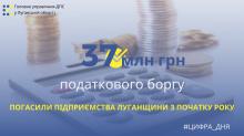В Головному управлінні ДПС у Луганській області повідомили, що протягом січня-липня поточного року до бюджетів усіх рівнів за рахунок погашення податкового боргу надійшло 37,3 млн грн, у тому числі у липні 2020 року – 3,3 млн гривень.