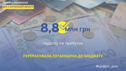 Луганщина перерахувала до бюджету 8,8 млн грн податку на прибуток