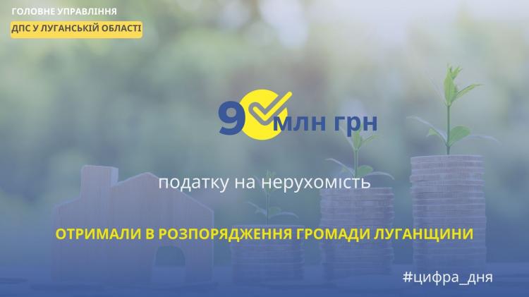 Громади Луганщини отримали в розпорядження понад 9 млн грн податку на нерухомість