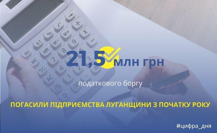 В Головному управлінні ДПС у Луганській області повідомили, що протягом січня - квітня 2021 року до бюджетів усіх рівнів за рахунок погашення податкового боргу надійшло 21,5 млн грн, в тому числі у квітні - 6,2 млн гривень.