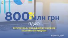 У Головному управлінні ДПС у Луганській області повідомили, що протягом січня – березня 2020 року до бюджетів усіх рівні надійшло 800,4 млн грн податку на доходи фізичних осіб (далі – ПДФО).