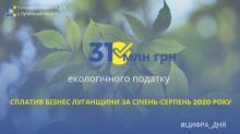 За січень - серпень 2020 року платники податків Луганської області перерахували до зведеного бюджету 30,7 млн грн екологічного податку. До спеціального фонду місцевих бюджетів було зараховано 19,2 млн грн, до державного бюджету - 11,5 млн гривень.