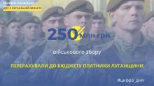 В Головному управлінні ДПС у Луганській області повідомили, що за січень – грудень 2020 року надходження військового збору склали 250,2 млн гривень. Це на 31,4 млн грн, або на 14,3 відс. більше надходжень січня - грудня 2019 року.