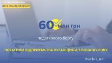 В Головному управлінні ДПС у Луганській області повідомили, що протягом січня – грудня 2020 року до бюджетів усіх рівнів за рахунок погашення податкового боргу надійшло 61,6 млн грн, у тому числі у грудні 2020 року - 6,9 млн гривень.