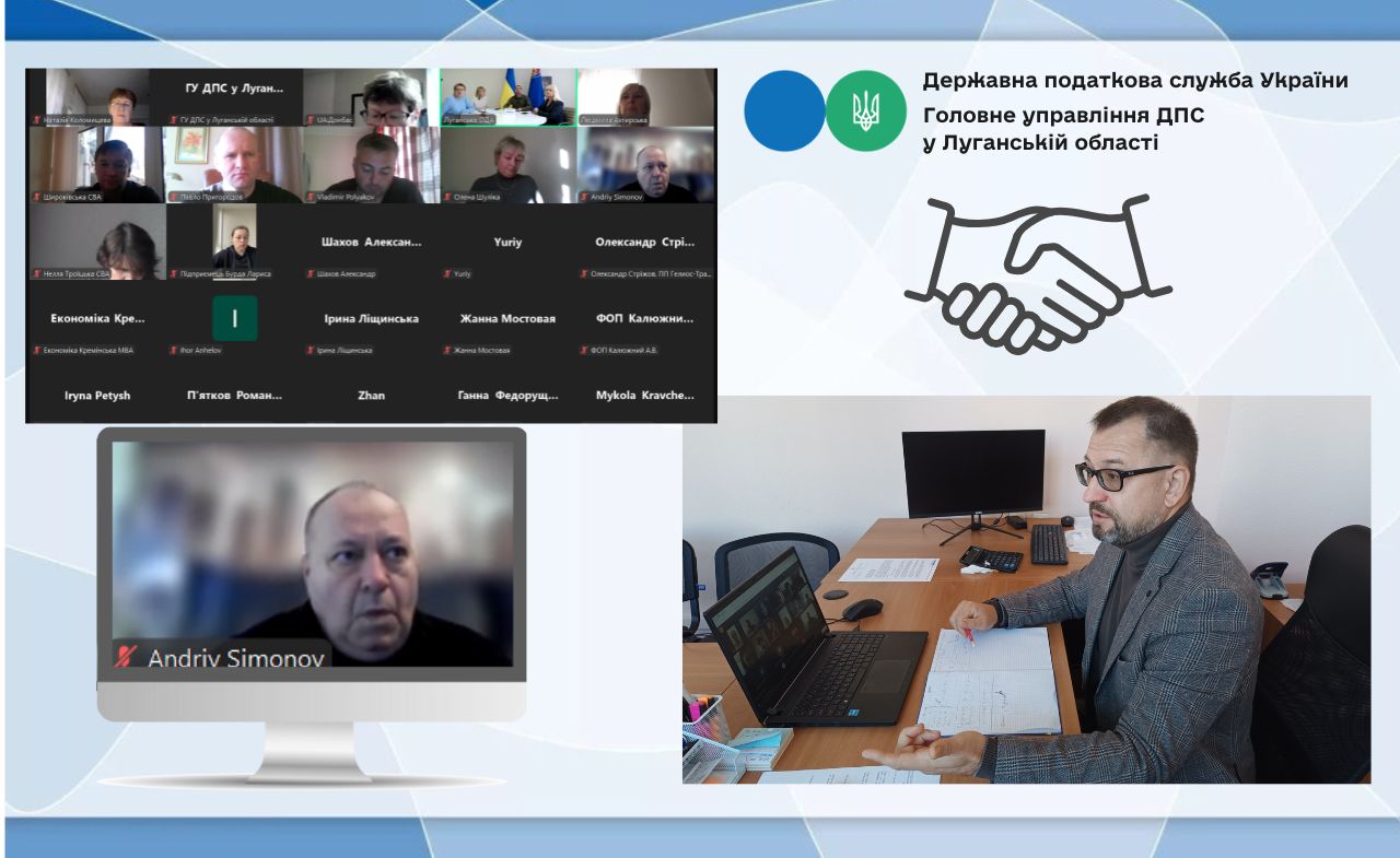 Онлайн-конференція за участю очільника Головного управління ДПС у Луганській області Ігоря Ткачова, заступниці начальника відомства Людмили Хворостян та керівників структурних підрозділів податкової Луганщини онлайн-конференцію.