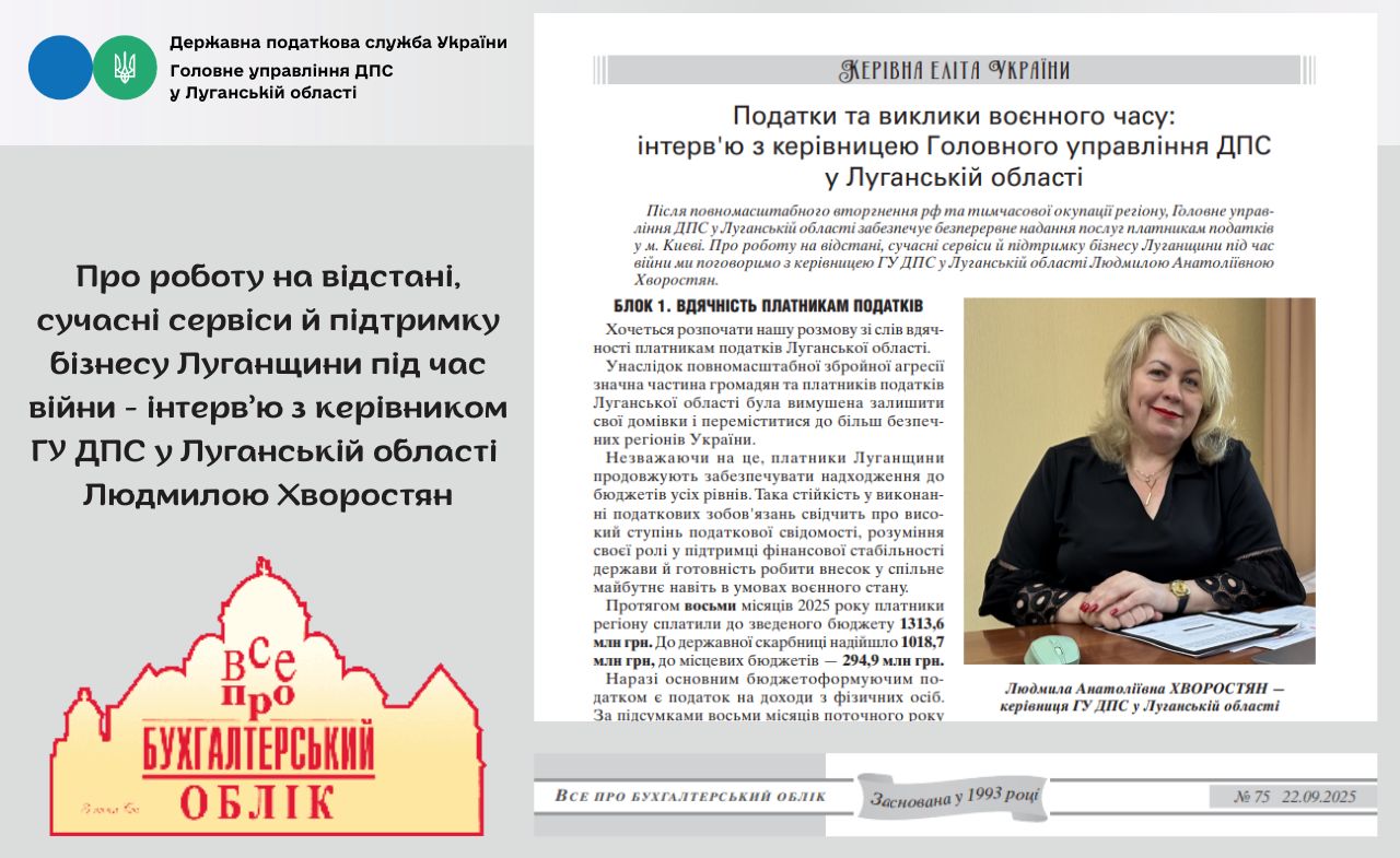 Інтерв'ю Людмили Хворостян для газети "Все про бухгалтерський облік" випуск № 75 від 22.09.2025