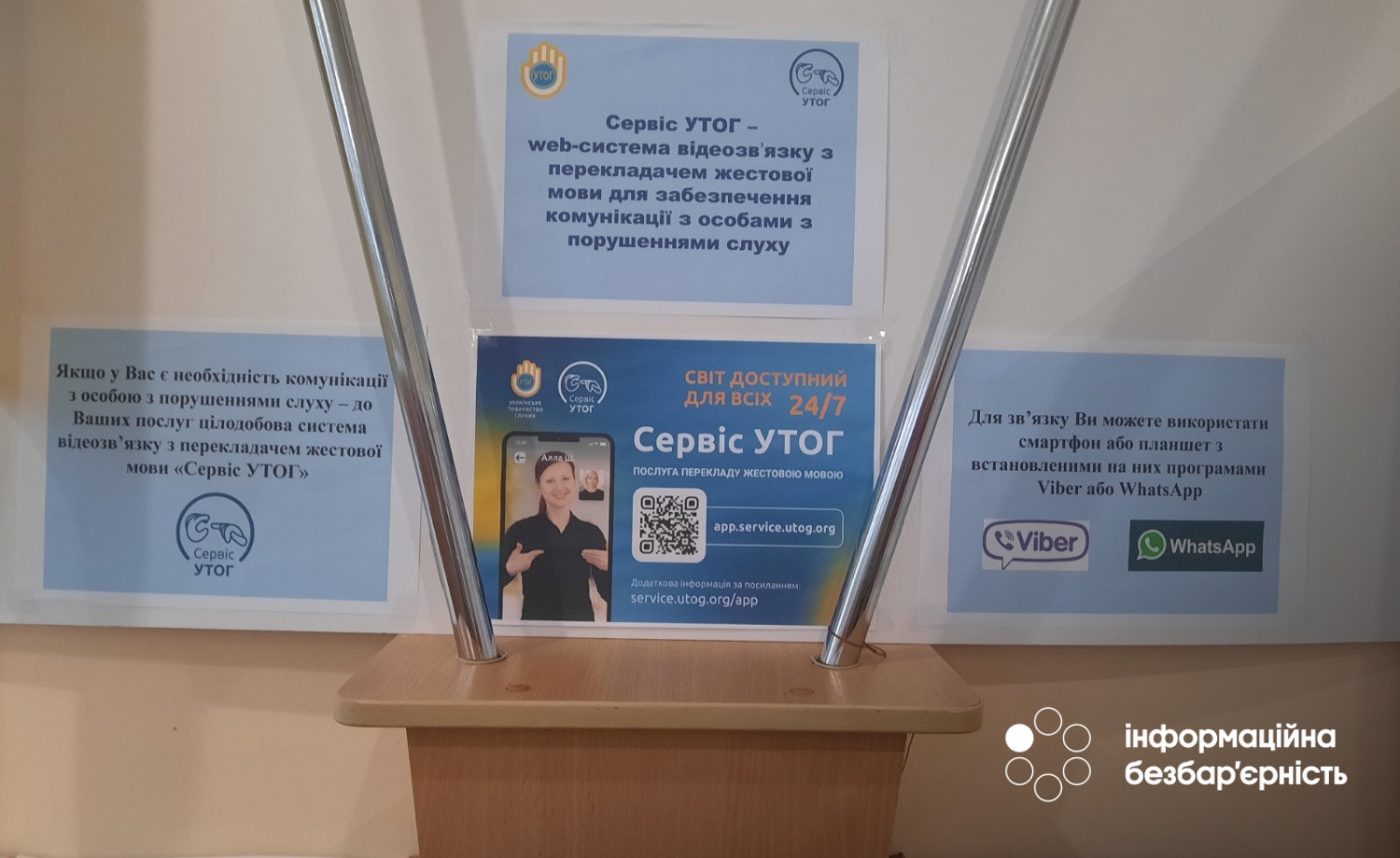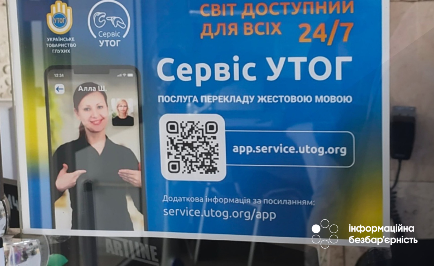 Щоб скористатися достатньо лише відсканувати QR-код, щоб отримати доступ до відеозв’язку з професійним перекладачем Українського товариства глухих (УТОГ).