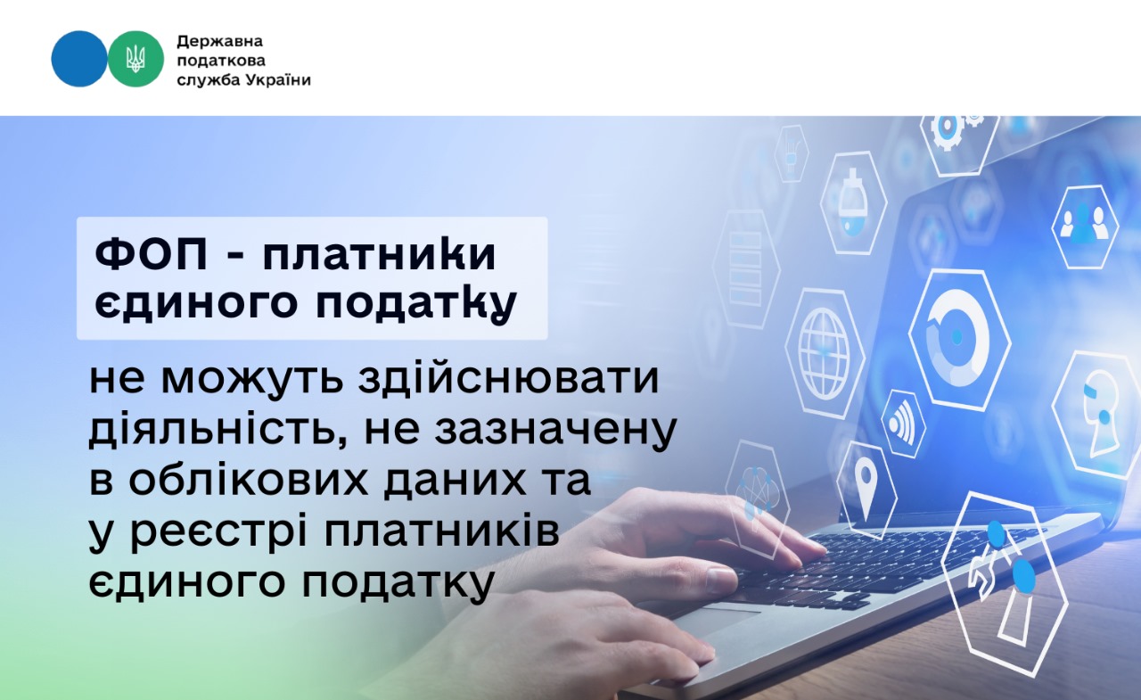 ФОП - платники єдиного податку не можуть здійснювати діяльність, не зазначену в облікових даних та у реєстрі платників єдиного податку