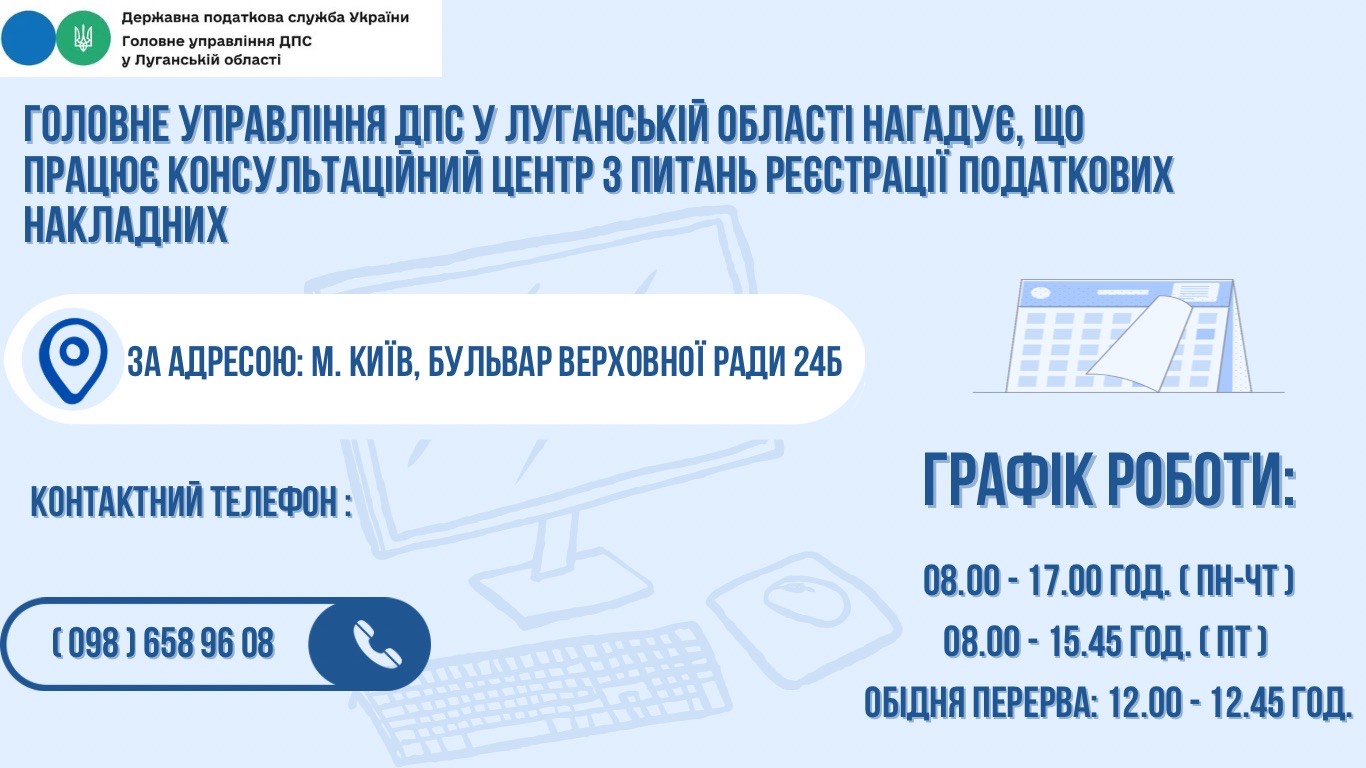 Нагадуємо! Продовжує працювати консультаційний центр з питань зупинення реєстрації податкових накладних