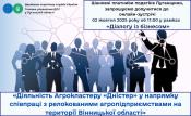 02 жовтня об 11:00, у рамках проєкту «Діалог з бізнесом», відбудеться онлайн-зустріч з підприємцями Луганщини за темою: «Діяльність Агрокластеру «Дністер» у напрямку співпраці з релокованими агропідприємствами на території Вінницької області».