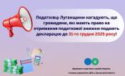 Податківці Луганщини нагадують, що громадяни, які мають право на отримання податкової знижки подають декларацію до 31-го грудня 2025 року