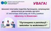 27 листопада об 11:00, у рамках проєкту «Діалог з бізнесом», відбудеться онлайн-зустріч з підприємцями Луганщини за темою: «Луганщина в релокації — виклики та можливості».