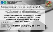 12 лютого об 11:00, у рамках проєкту «Діалог з бізнесом», відбудеться онлайн-зустріч з підприємцями Луганщини за темою: «Огляд національного законодавства в сфері благополуччя сільськогосподарських тварин. Оформлення фітосанітарних документів. Вимоги до бізнесу».