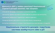 Національна стратегія доходів – це дорожня карта реформування податкової системи та удосконалення процедур податкового адміністрування, необхідна для забезпечення потенціалу задоволення фіскальних потреб у середньостроковій перспективі. Вона також підтримує економічне зростання через зменшення нерівності та неефективності в політиці та адмініструванні доходів. Це бачення майбутньої системи доходів України, що надає чіткості та мети реформам.