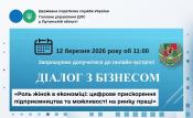 12 березня об 11:00, у рамках проєкту «Діалог з бізнесом», відбудеться онлайн-зустріч з підприємцями Луганщини за темою: «Роль жінок в економіці: цифрове прискорення підприємництва та можливості на ринку праці».