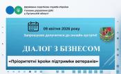 09 квітня 2026 року о 14:00, у рамках проєкту «Діалог з бізнесом», відбудеться онлайн-зустріч за темою: «Пріоритетні кроки підтримки ветеранів».